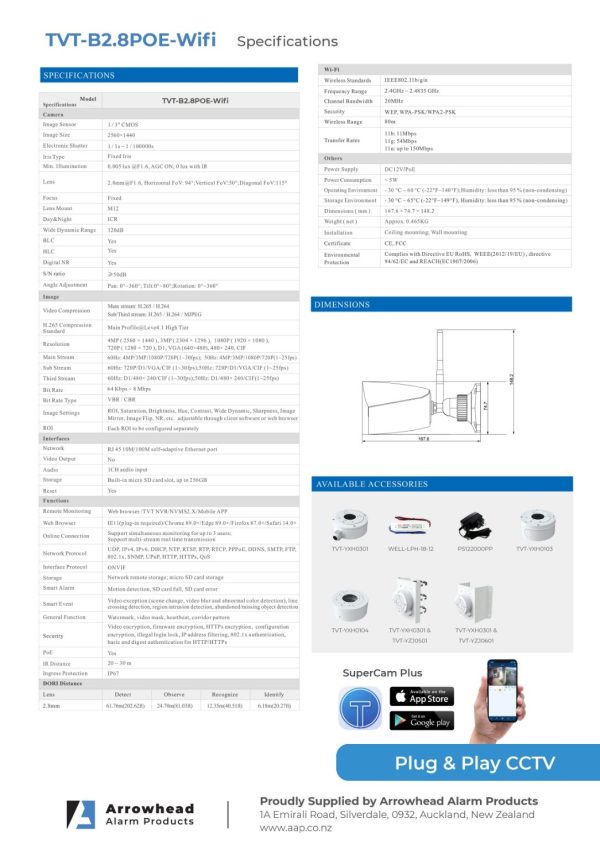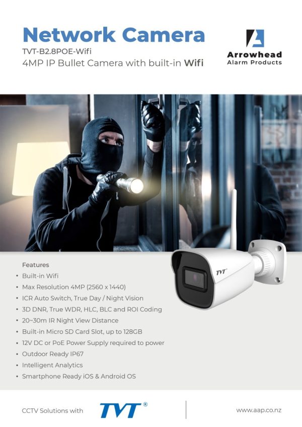 Arrowhead Alarm Product – 4MP IP Bullet Network Camera with built in Wi-Fi