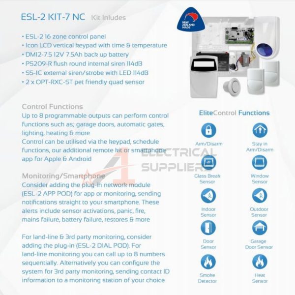 - 1x ESL-2 Hardwired 16 Zone ESL Alarm Panel in a Plastic Cabinet with 8 On Board Zones, 8 ATZ Zones OR Wireless Zones if a Wireless Receiver is added, Analogue Dialler and Transformer, if you require a Plug Pack notify us with your order